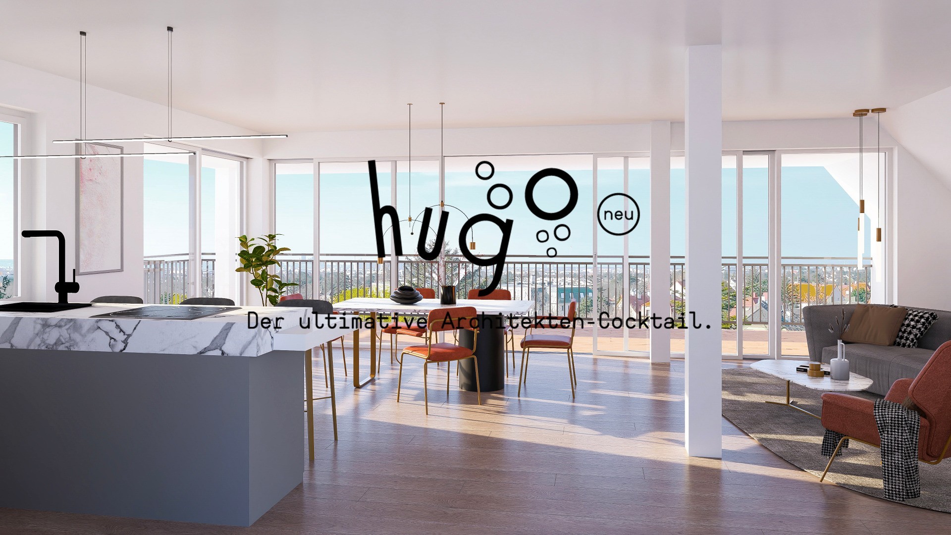 Cheers darling, ich bin der HUGO. Nicht der Sommerspritzer, sondern ein 135 m² Penthouse. Man nehme eine 50 m² Terrasse mit Rundumblick bis runter nach Wien, gemixt mit einer Wohnküche mit großzügiger Fensterfront, Geschüttelt mit zwei Schlafzimmern, zwei Badezimmern und einem Grundriss, der einfach funktioniert. Gerührt mit dem Speiselift der die Küche direkt mit dem Rooftop verbindet als krönendem Highlight, verfeinert mit den purem Wow‑Effekt – und fertig ist der Architekten‑Cocktail. Eine Kostprobe gefällig? Dann sichere dir einen Besichtigungstermin mit Christian & Max.